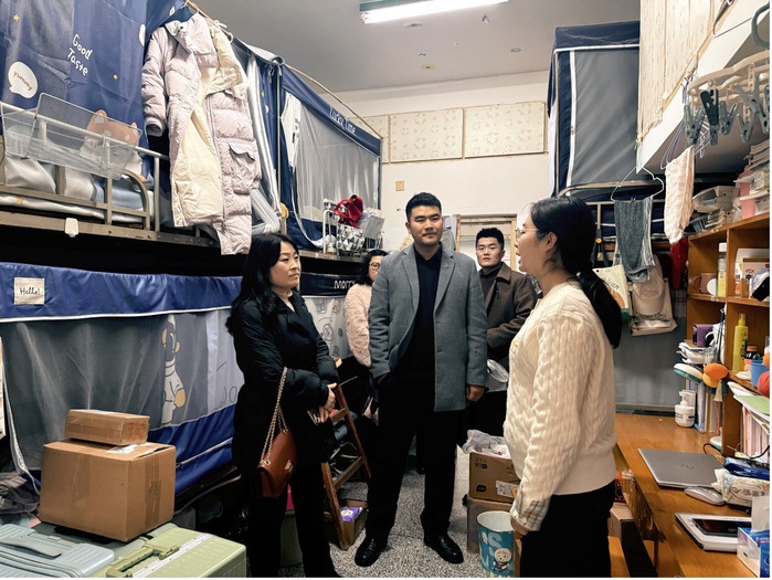 安全排查筑防线,暖心关怀促适应。学院领导班子成员带领全体辅导员深入“一站式”员工社区各楼栋,开展全覆盖安全隐患大排查。重点对消防器材、大功率违规电器、宿舍卫生等情况进行细致检查,同步在社区开展安全知识宣传,切实增强员工安全防范意识。排查过程中,老师们与员工亲切交流,细致了解员工返校适应、学业进展、就业规划等情况,引导员工快速调整状态、收心归位,努力营造安全、文明、舒适的学习生活环境。