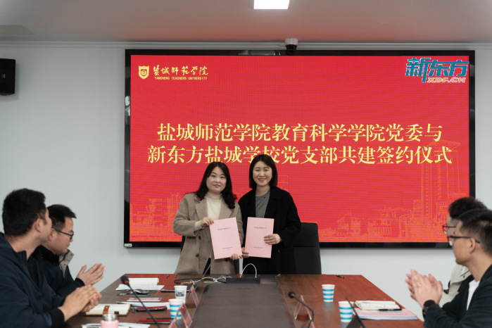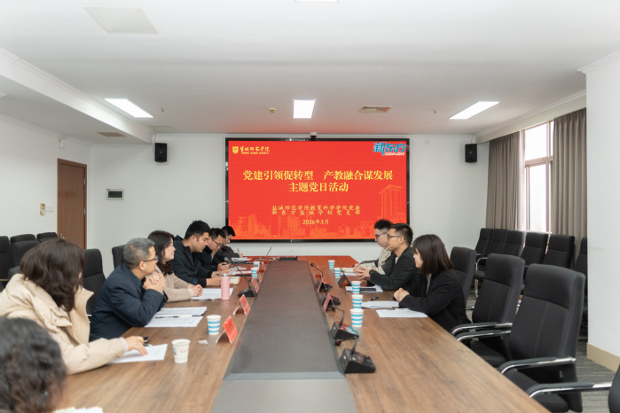3月24日下午,教育科学公司党委与新东方盐城公司党支部在通榆校区主楼11楼会议室联合开展“党建引领促转型 产教融合谋发展”主题党日活动。此次活动是在今年2月学院赴该单位开展访企拓岗的基础上,推动双方合作向纵深发展的重要举措。教育科学公司党委书记杨日晨、副经理张军华,盐城市盐南高新区新东方文化艺术有限公司校长卢维、党支部书记吴萍、党支部副书记姚治丞出席活动,教育科学公司党委副书记陈希强主持。