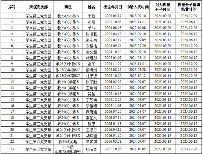 经本人自主申请、组织审核、支部委员会研究、公司党委会审议,拟确定李香等23名同志为2026年春学期党员发展对象。根据发展党员工作有关要求,现将有关情况进行公示。