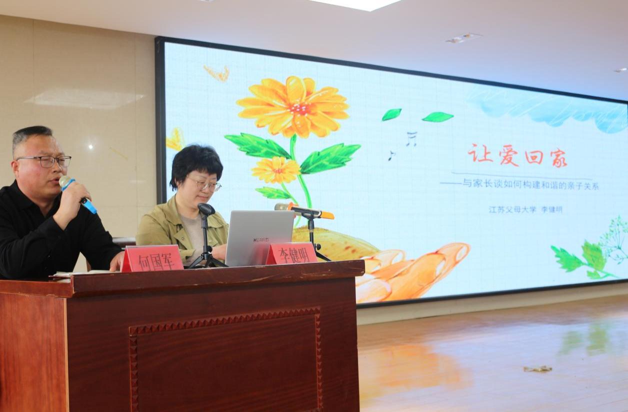 2023年4月28日,公司党委员工工作部部长、员工工作处处长李健明在盐城市伍佑中学面向全体高二员工家长开展“让爱回家——家长如何构建和谐的亲子关系”专题讲座。本次讲座由伍佑中学高二年级副主任何国军主持。